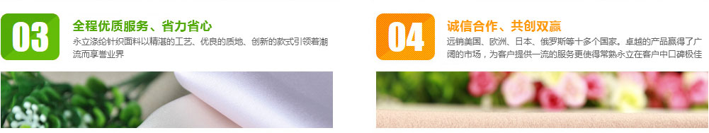 公司成立于1997年,坐落于風(fēng)景秀麗的虞山腳下,位于中國經(jīng)濟最活躍的版圖--長江三角洲經(jīng)濟技術(shù)開發(fā)區(qū)的黃金地段上,常熟市永立針紡織有限公司,伴隨著中國針紡織品行業(yè)蓬勃發(fā)展,走過了10多年的創(chuàng)業(yè)歷程,如今已發(fā)展成為一家集工、貿(mào)于一身,在行業(yè)內(nèi)聞名遐邇的專業(yè)生產(chǎn)滌綸針織面料的特色企業(yè)。本公司擁有來自臺灣的先進(jìn)制造設(shè)備,以雙面小提花機為主的34寸(16--45針)雙面緯編機50臺、34寸(20--50針)單面開幅機9臺、36寸 22針德國邁耶OVJE雙面電腦大提花機6臺及其他先進(jìn)設(shè)備。憑借著一流的設(shè)備,以及“人無我有,人有我好,人好我轉(zhuǎn)”的經(jīng)營理念,常熟永立一直致力于滌綸面料的創(chuàng)新...